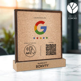 Diseñadas especialmente para negocios que quieren destacar en el mundo digital, estas placas combinan tecnología moderna con materiales naturales y sofisticados. Están equipadas con tecnología NFC integrada y un código QR impreso que lleva a tus clientes directamente a tu perfil de reseñas en Google, facilitando al máximo que dejen sus comentarios positivos con solo un toque o escaneo.